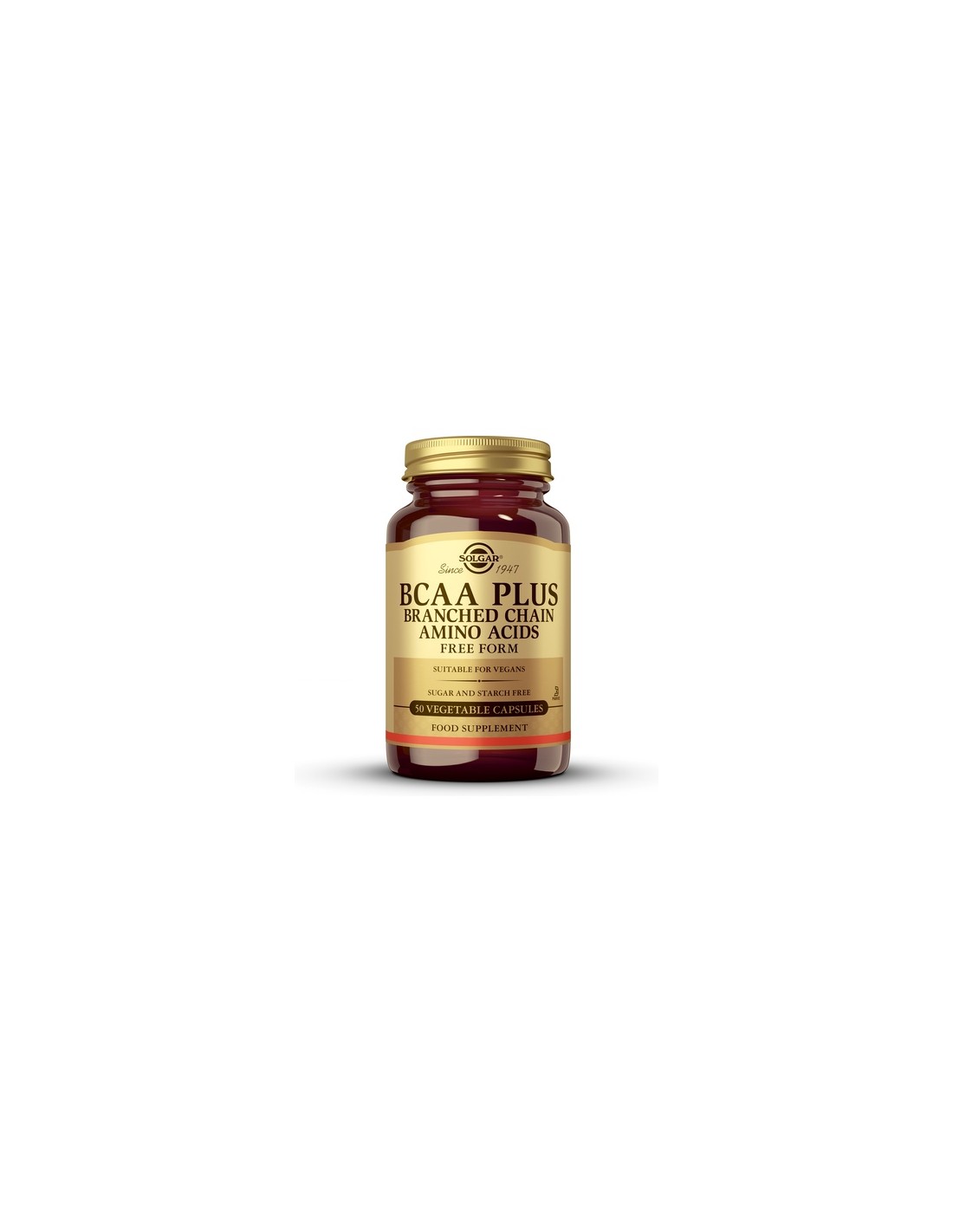 Solgar BCAA Plus Cápsulas vegetales proporciona aminoácidos esenciales de cadena ramificada (BCAA) como L-leucina, L-isoleucina y L-valina. Además, incluye vitamina B6, que apoya el metabolismo normal de proteínas y glucógeno. Los aminoácidos son componentes clave de las proteínas y cumplen múltiples funciones en el organismo. Se clasifican en esenciales, que deben obtenerse a través de la dieta, y no esenciales, que el cuerpo puede producir. Un déficit en aminoácidos esenciales puede aumentar la demanda de los no esenciales. Fuentes de aminoácidos incluyen carnes, judías, quesos y huevos. Solgar BCAA Plus es uno de los productos de aminoácidos de alta calidad de Solgar, recomendándose consumir 2 cápsulas vegetales al día. Todos los productos Solgar cumplen con estrictos estándares de excelencia desde 1947, y el 98 % de los usuarios recomendaría la marca.* *Encuesta de Global Praxis de 2017 con 3.882 consumidores de complementos alimenticios. Los suplementos no reemplazan una dieta variada y equilibrada ni un estilo de vida saludable.
